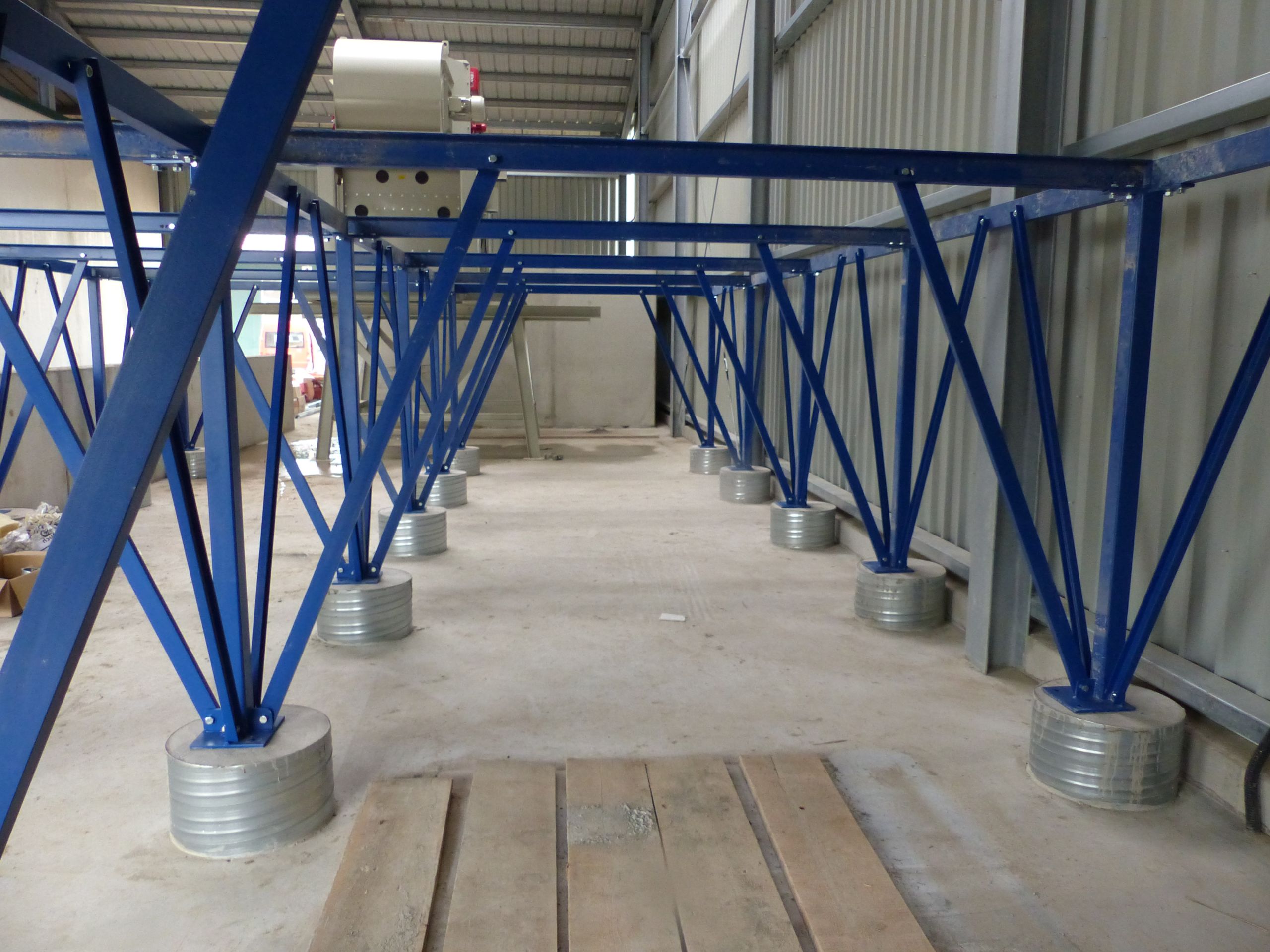 La cellule carrée est construite de telle façon qu‘elle peut être disposée seule ou en groupes de plusieurs cellules disposées de façon modulaire. Afin d‘économiser de la matière et de réduire les coûts, la paroi d‘un silo pourra être utilisée pour une ou plusieurs autres cellules accolées. C‘est pourquoi il existe plusieurs types de cellules (A, B et C). La cellule A est composée de 4 parois et la cellule B se compose uniquement de 3 parois vissées à la cellule A. A partir de 2 rangées minimum, les cellules C disposant uniquement de 2 parois viennent compléter les cellules A et B de la matière sans moyen supplémentaire. Les cônes sont disponibles en versions 45°et 60°.