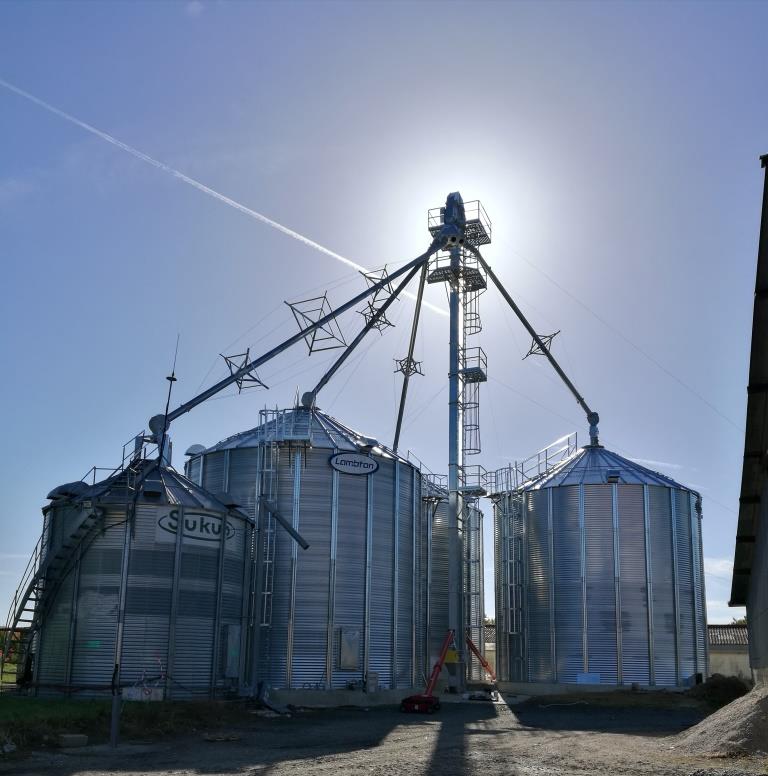 Agrandissement du stockage et de la manutention avec élévateur de classe Industrielle avec grandes sections de passage, godets incassables, tension automatique, grandes plateformes d’accès, renforts de tuyaux et boites d’amortissement autonettoyantes.